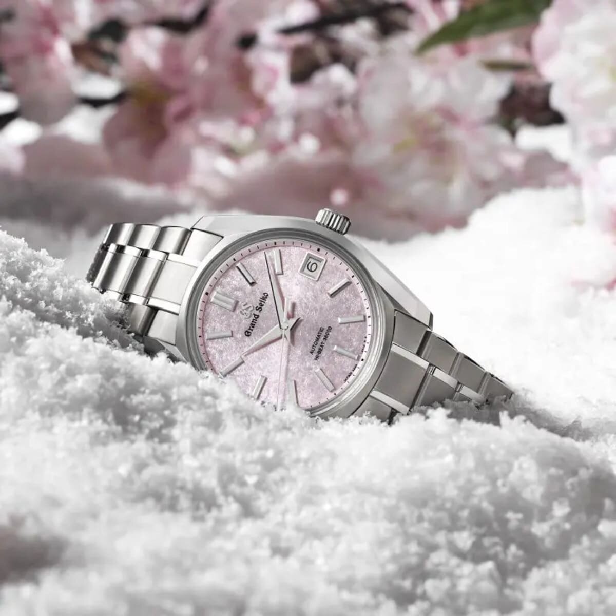 A Grand Seiko és a természet szoros kapcsolata jól ismert, így nem csoda, ha a sakura motívuma, színvilága feltűnik a számlapokon.