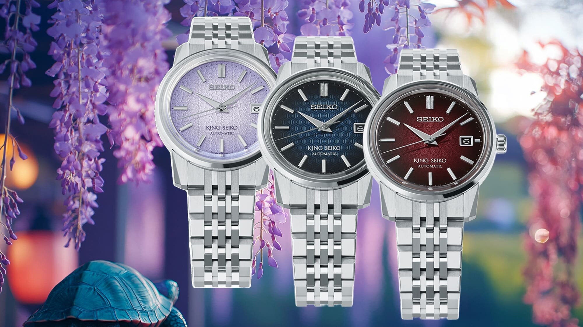 A Kameido szigetén készülő King Seiko bőven meríthetett a sziget jellegzetességeiből, így a három modell számlapja a természet helyi jellegzetességeit mutatja be.