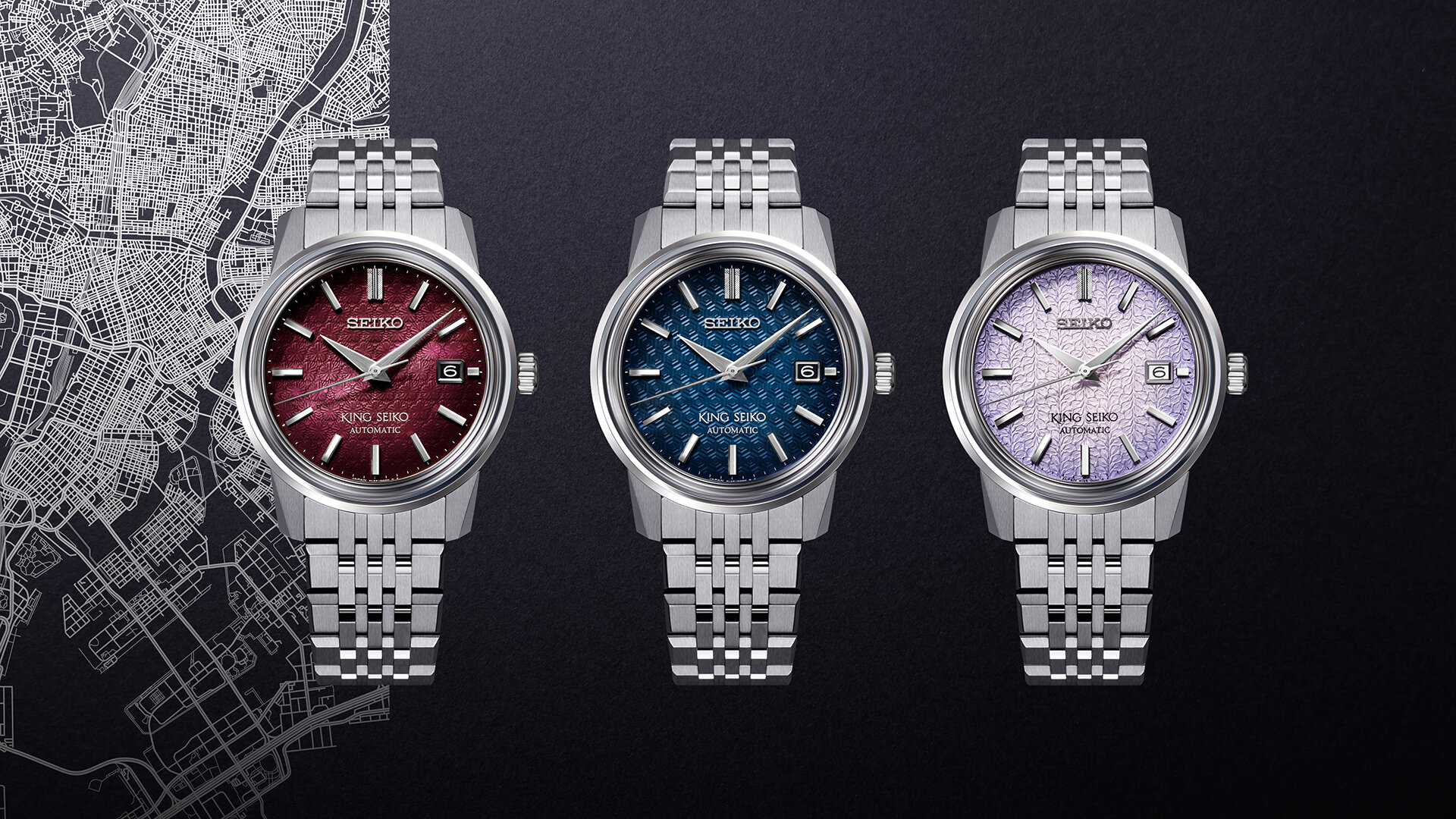 Három új King Seiko modell érkezik most, amelyek számlapjaikon a King Seiko gyökereire utaló színeket és motívumokat használnak.