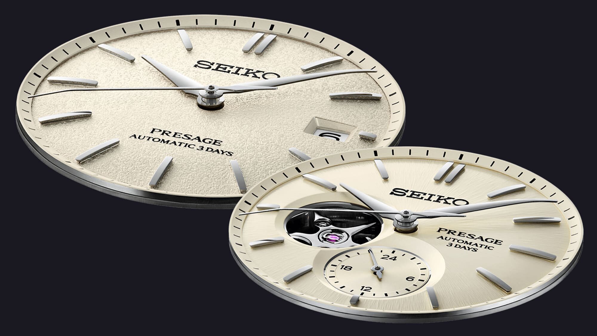 Az új Presage Classic series modellek különleges kialakítású számlapjainak a színe sem a megszokottak közül került ki.