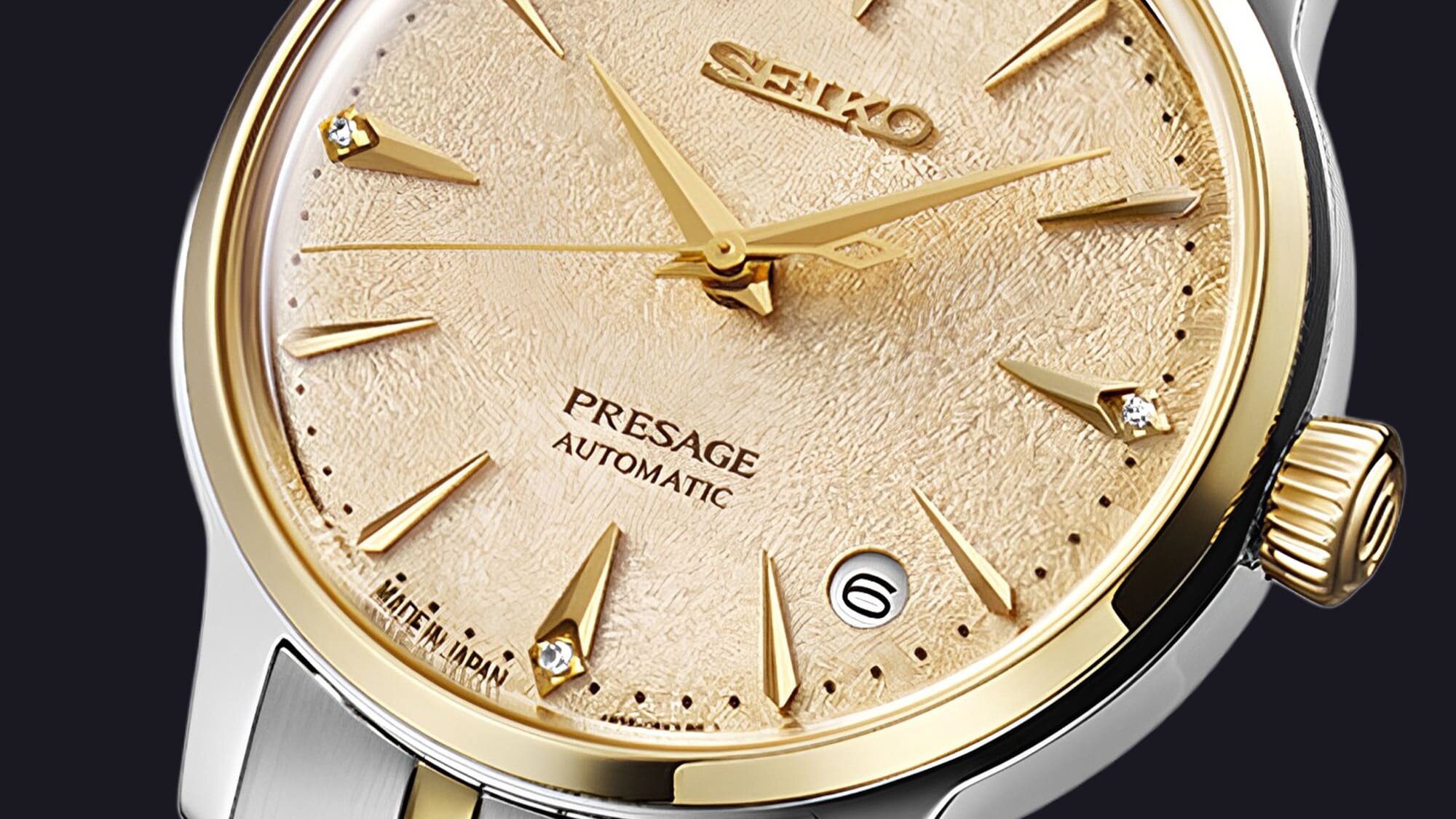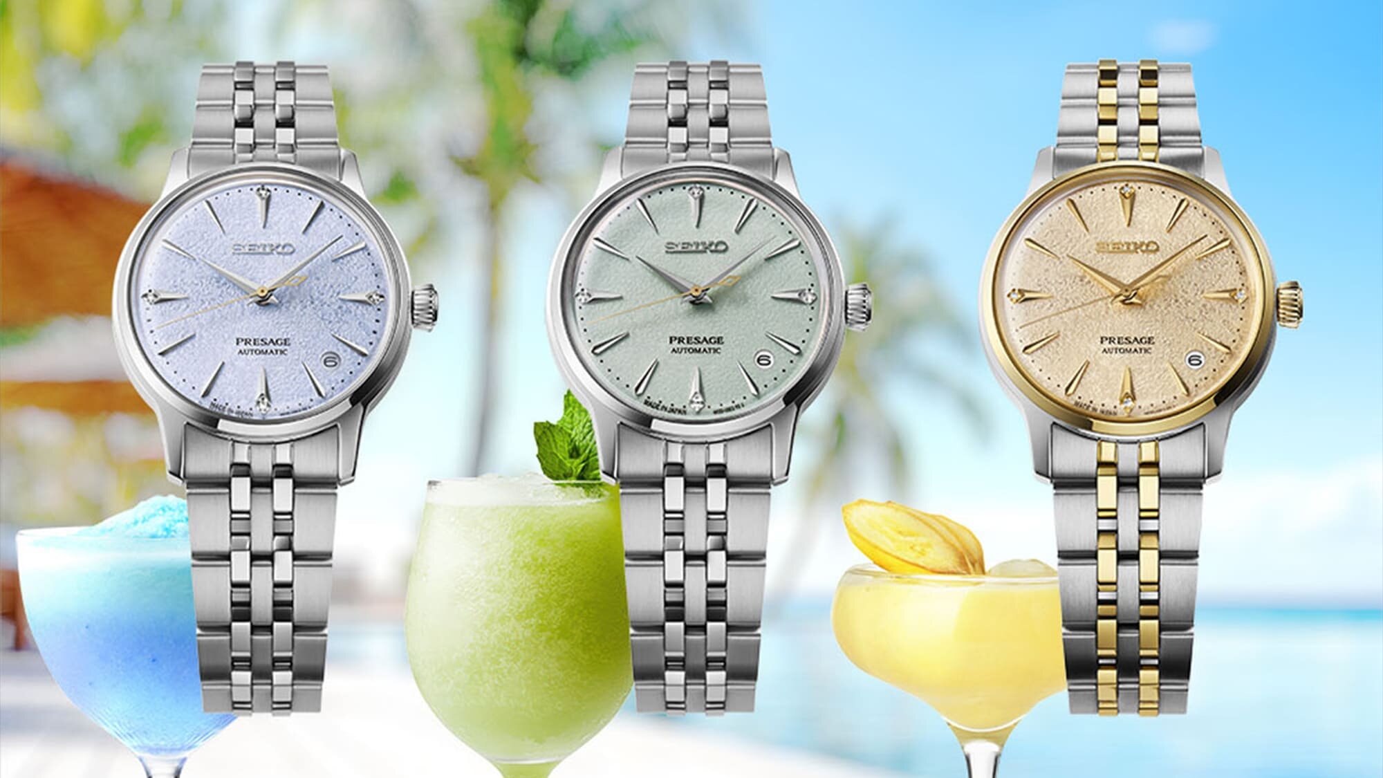 Nyáresti koktélpartik hangulatát idézi a Presage kollekció három új modellje, a Cocktail Time sorozat tagjai, amelyek az igényes hölgyek részére készültek. A különlegességük, mint általában, most is a számlapokban rejlik, a tokiói Star Bar bartenderének kedvenc koktéljai most fagyos hangulatban mutatják meg magukat.