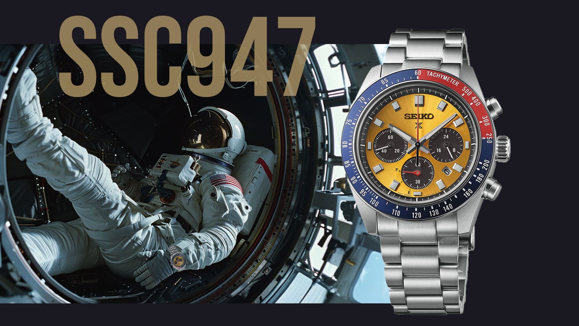 Az új Speedtimer solar chronograph sorozatok két méretben készülnek, az SSC947P1 a nagyobb, 41.4 mm-es tokátmérővel érkezik. A tok és a fémszíj megegyezik a sorozat többi darabjával, ami igazán egyedivé és várhatóan igen keresetté teszi majd, az a stílusa, amely a Pogue ezredes kezén a világűrt is megjárt modellt idézi fel.