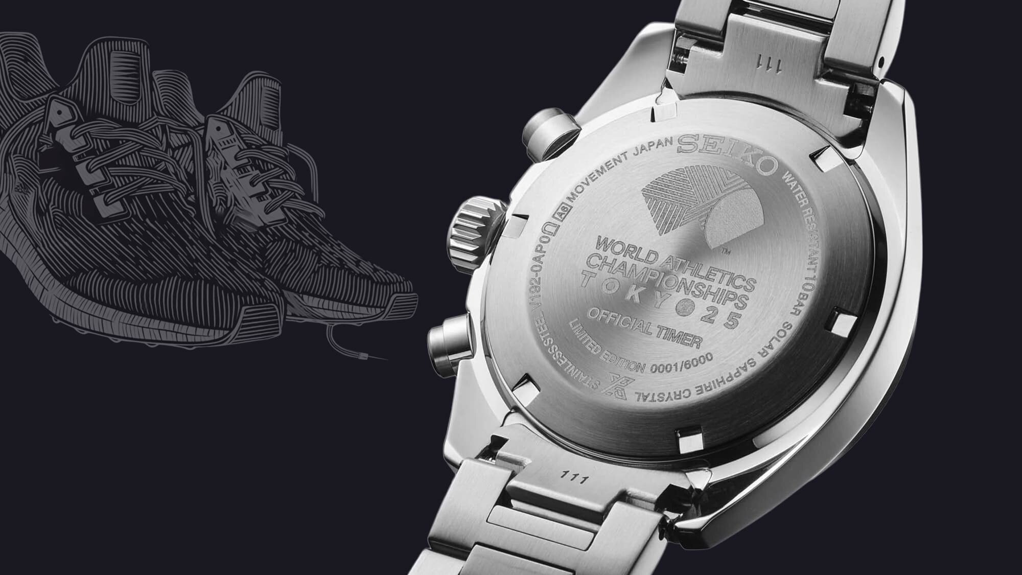 Az óra és a Tokyo 25 Atlétikai Világbajnokság kapcsolatát a hátlap örökíti meg, a mindössze 6000 darabban készülő modell hátlapja a limitált kiadás egyedi sorszáma mellett az esemény logóját is magán viseli, miképpen az előző, budapesti VB alkalmából megjelent, már nem elérhető korábbi limitált Prospex Speedtimer modell is tette.