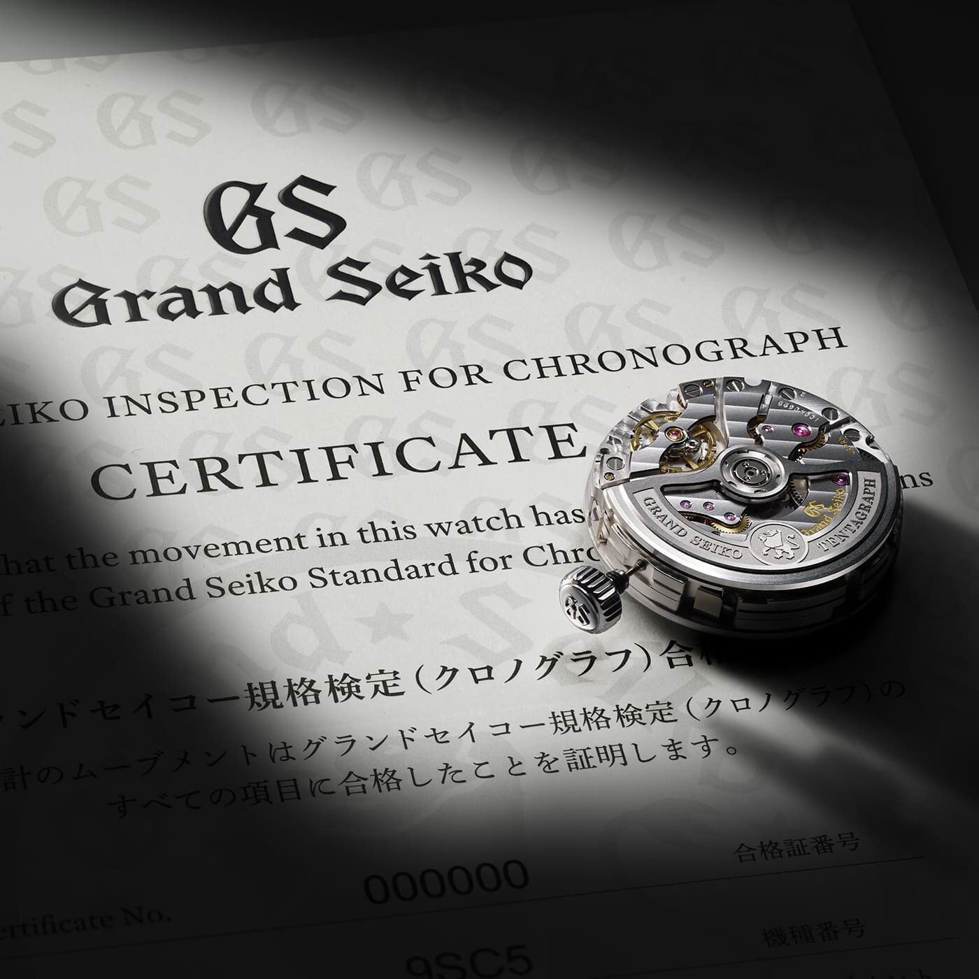 Sorra érkeztek a Grand Seiko újratervezett kaliberek (ezeket a szerkezet számában szereplő 5-ös számról ismerhetjük fel), amelyek sorában egy Hi-Beat, vagyis magas féllengésszámú szerkezet is készült kronográf modullal, amely a szerkezet számlap felőli oldalán került elhelyezésre, így az átlagos mechanikus kronográfokhoz képest a hátoldal felől nem is látható.