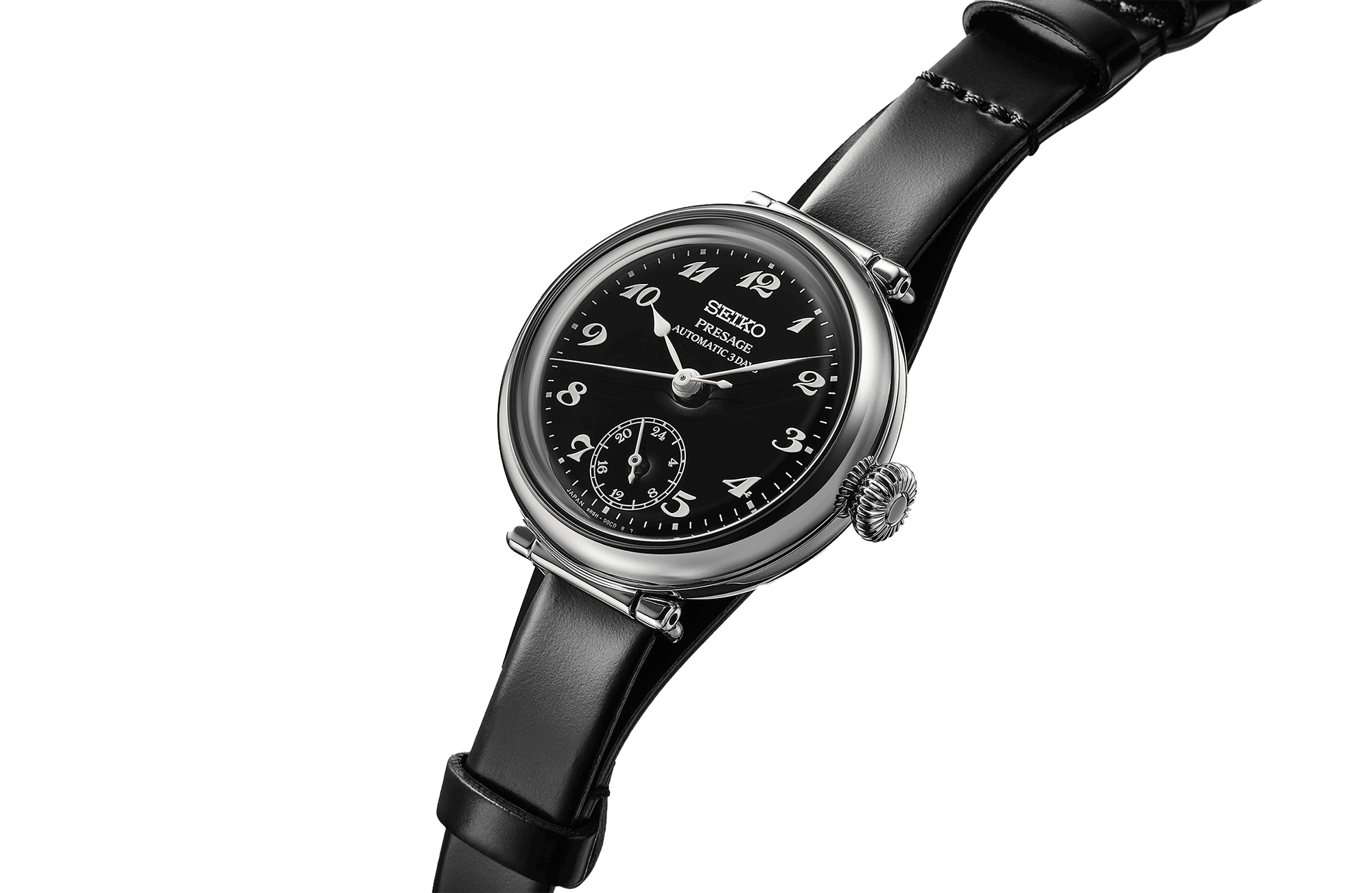 A forma valódi klasszikus, a 35 mm-es átmérő a régmúlt kedvelt mérete volt. A kerek tok legjellegzetesebb részei a mozgatható tokfülek, amelyeken keresztül az egyrészes bőrszíjat lehet átfűzni, pont, ahogyan az első Seiko órák megjelenésének idejében tették, ez is egy kissé a régi zsebórák hangulatát idézi.
