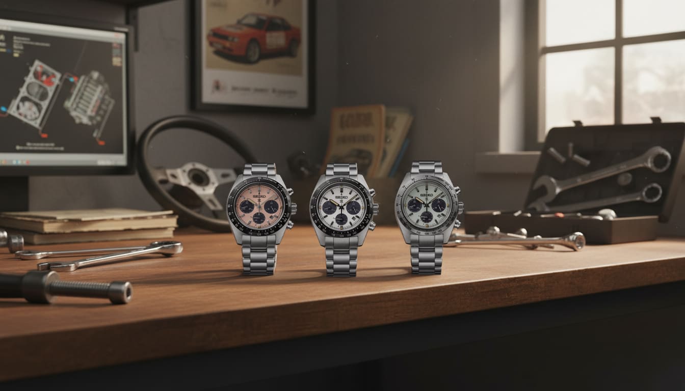 Sorra érkeztek autós tematikájú modellek, jellemzően limitált kiadásban és mindig egy-egy szép korszakáról megemlékezve az autósportoknak, hiszen mind a Prospex, mind a Speedtimer koncepciójába tökéletesen illik a salakos versenypályák mellett a benzingőzös pályák hangulata is.