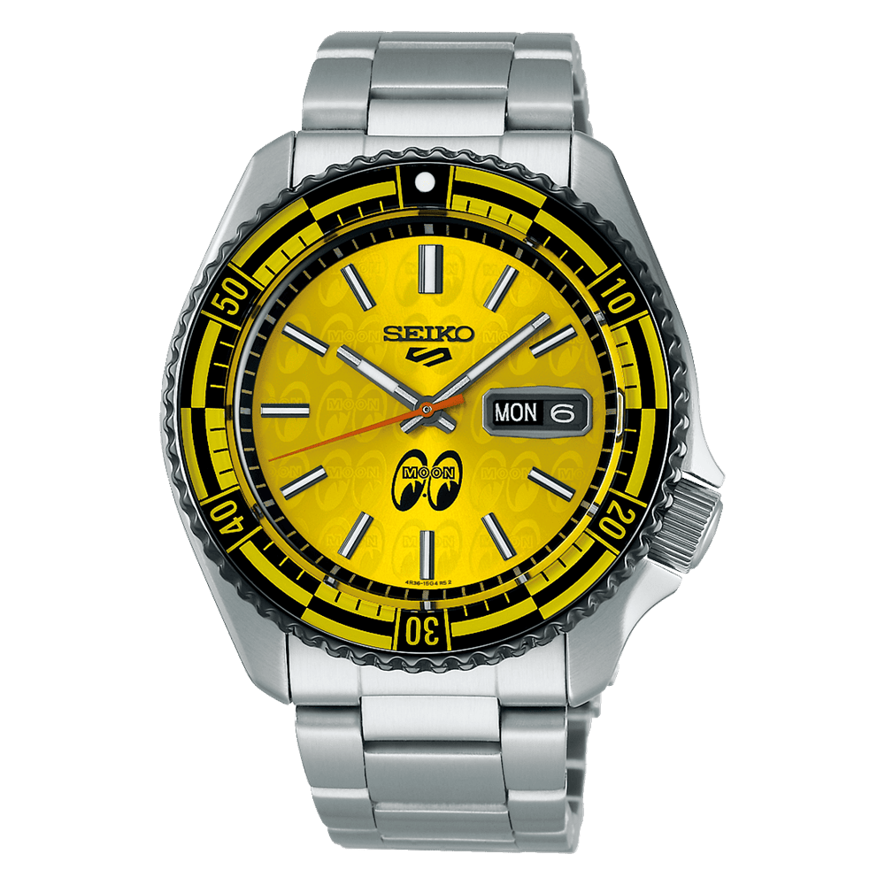 Az óra legjellegezetesebb eleme a színvilága, a fekete-sárga színösszeállítása a Mooneyes világát idézi, míg a design a Seiko 5 Sports korábbi sikeres modelljeinek kockás stílusában készült.