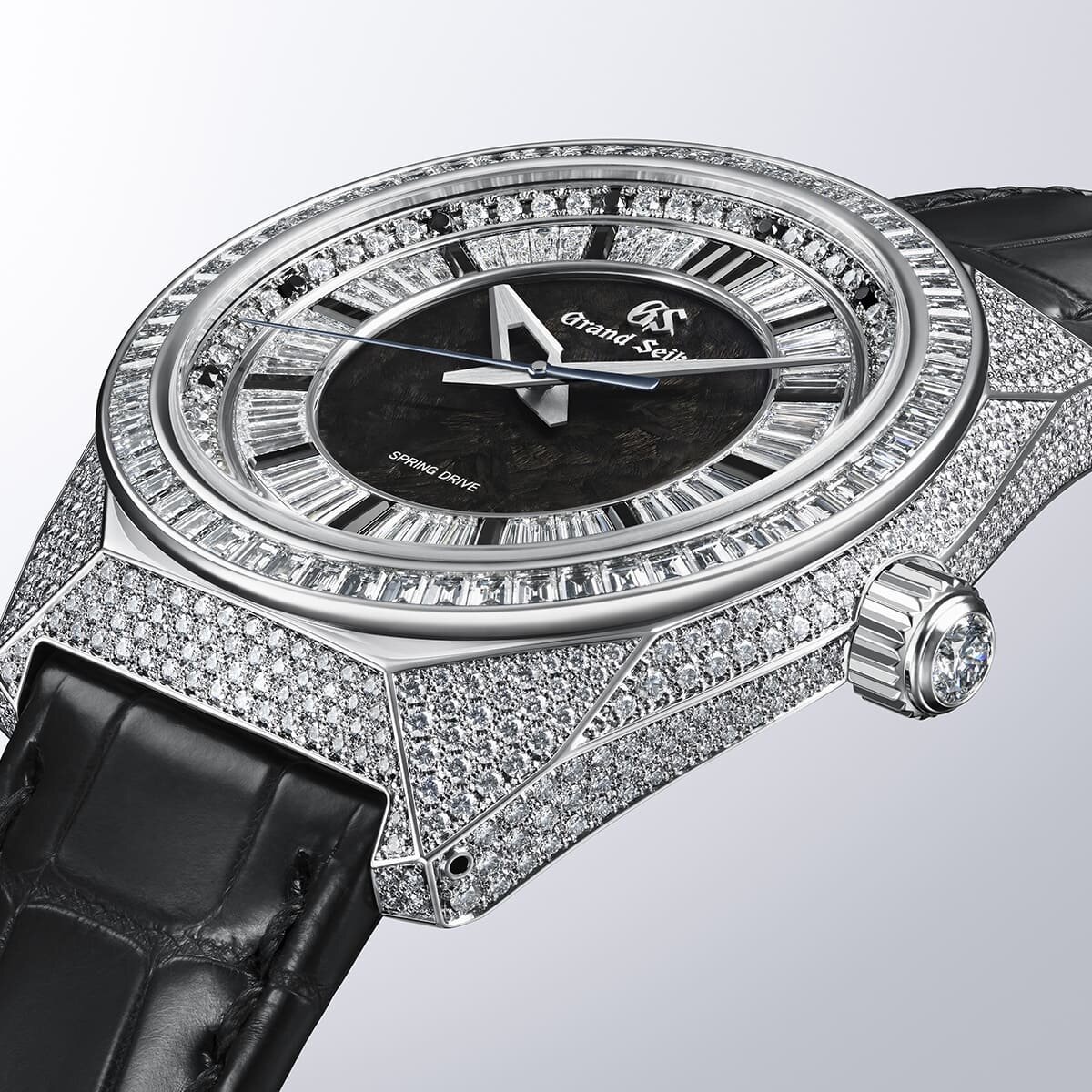 Platina tok, több, mint 600 darab gyémánt különféle csiszolással, krokodilbőr szíj és a legendás 9R01 Spring Drive kaliber a 8 napos(!) járástartalékával - ez a modell mindössze 8 darabban készült, és minden szempontból a legmagasabb színvonalú órakészítés kicsiny, elit klubjának tagja lett.