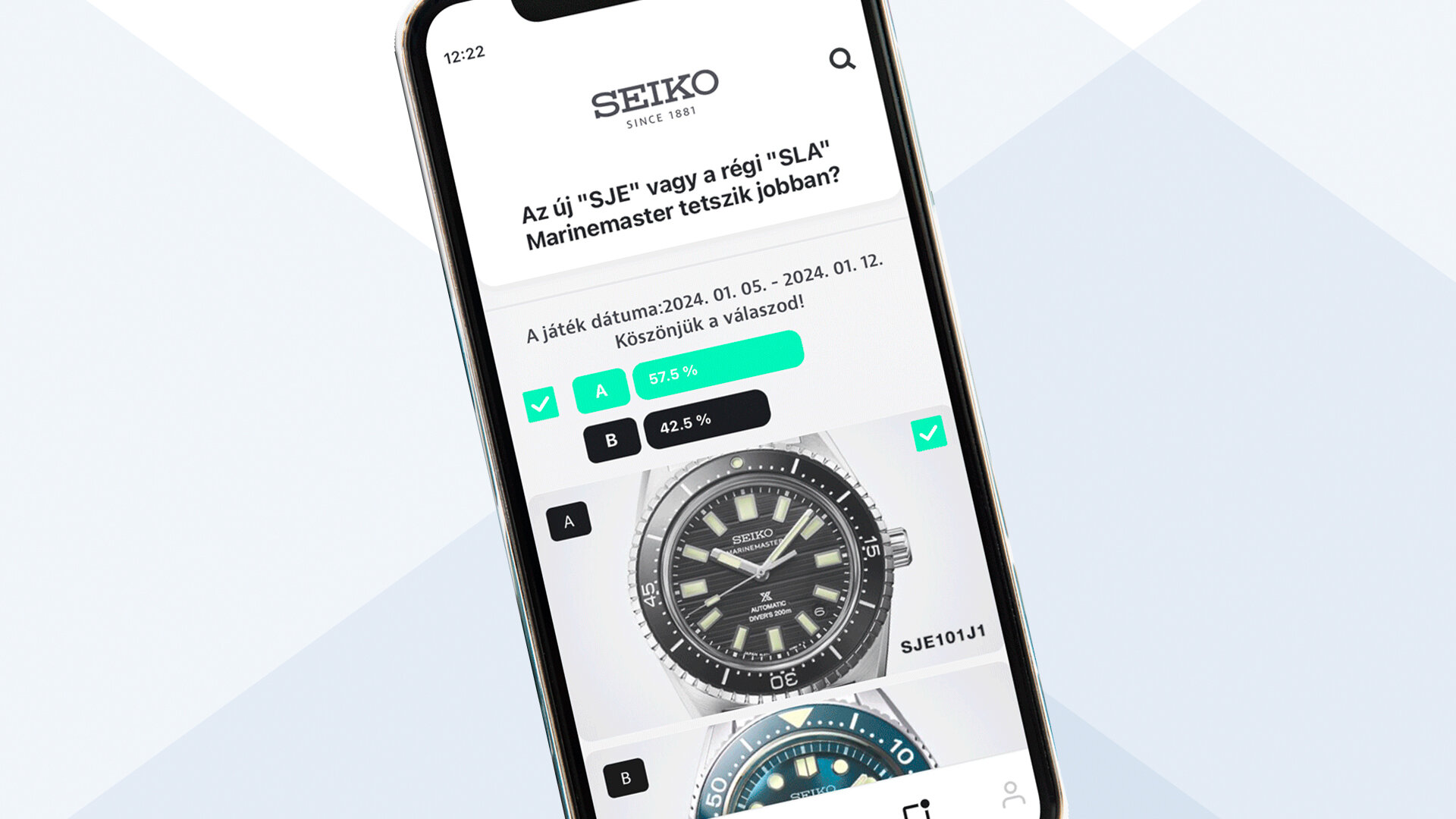 A Seiko Youtube csatorna nézői már tudhatják, hogy péntekenként a videókhoz kapcsolódóan rendszeresen ajándékokat sorsolunk ki azok között a nézők között, akik a Youtube-on vagy az applikációban szavaznak, vagy helyesen válaszolnak egy-egy feltett kérdésre. A nyereményjátékok a jövőben is megmaradnak, és mostantól - egyebek között - azt is megmutatjuk, hogy az egyes válaszlehetőségek milyen arányban kaptak szavazatokat.
