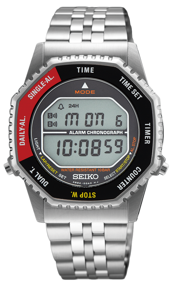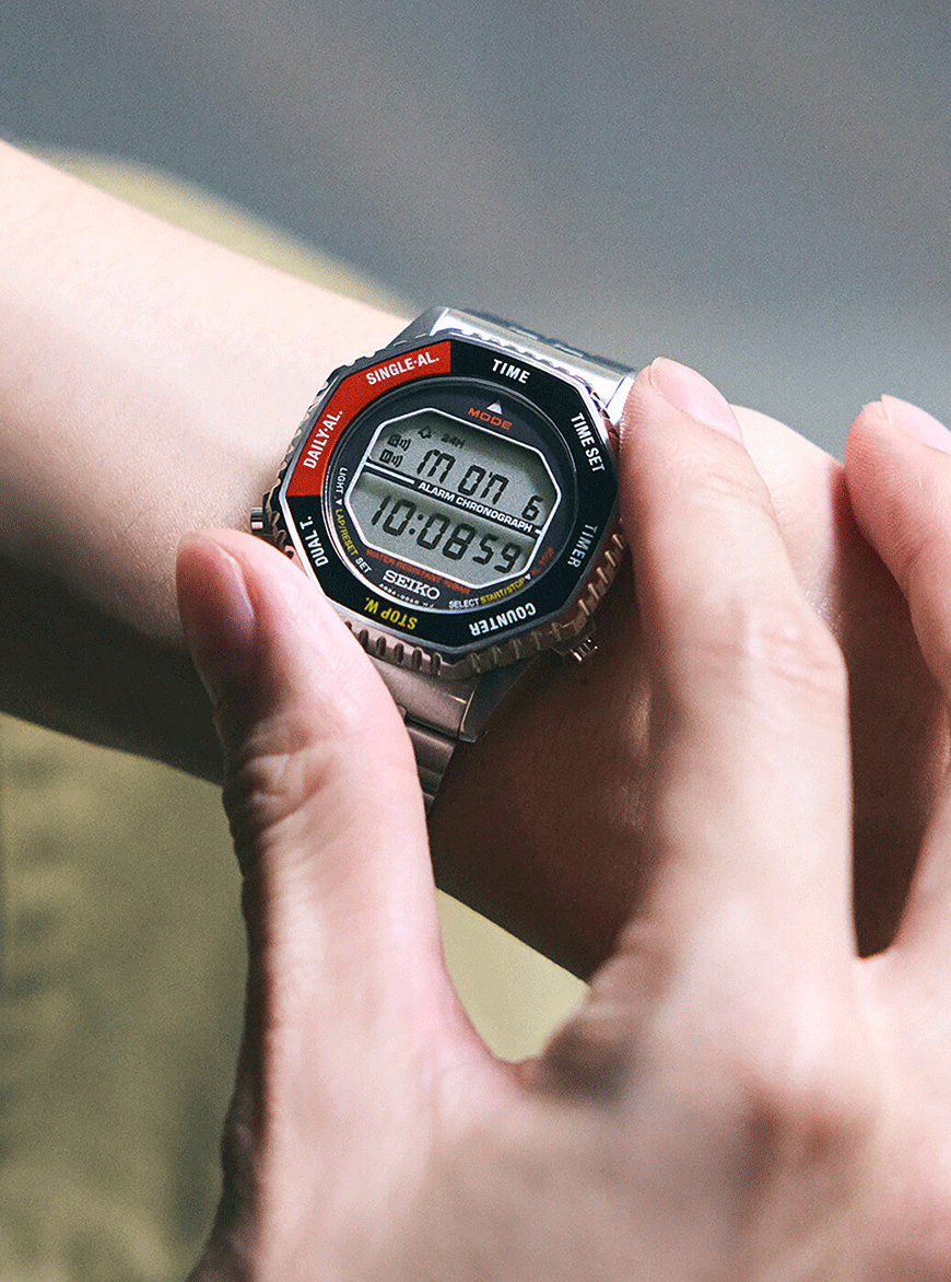 A Seiko 2025-ben újraélesztette a ’80-as évek egyik ikonikus digitális modelljét, amelyet egykor az űrhajósok is szívesen viseltek. Az új kiadás megőrizte az eredeti formajegyeket, ugyanakkor a mai technológia pontosságával és megbízhatóságával készült. A modellben az A824 kvarc szerkezet működik, amely az időmérés, a stopper, az időzítő, a visszaszámláló, a dual time és az ébresztés funkciókat kínálja, mindezt a jellegzetes forgatható lünettával vezérelve. Ez a megoldás nemcsak praktikus, hanem a dizájn egyik legkülönlegesebb eleme is, hiszen a funkciók közti váltás egyszerűen, egy mozdulattal elvégezhető. A 37 milliméteres tokméret, a 10,6 milliméteres vastagság és a 107 grammos súly kényelmes viseletet biztosít, a 10 baros vízállóság pedig tökéletesen elegendő a mindennapokhoz.