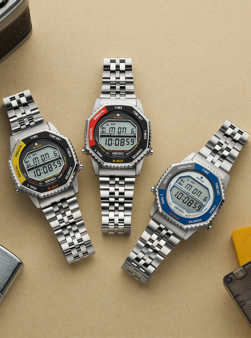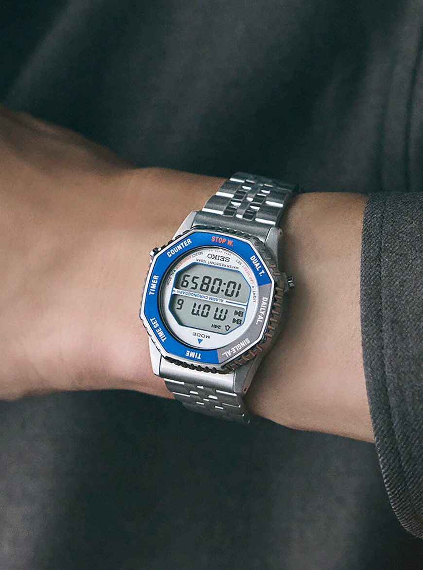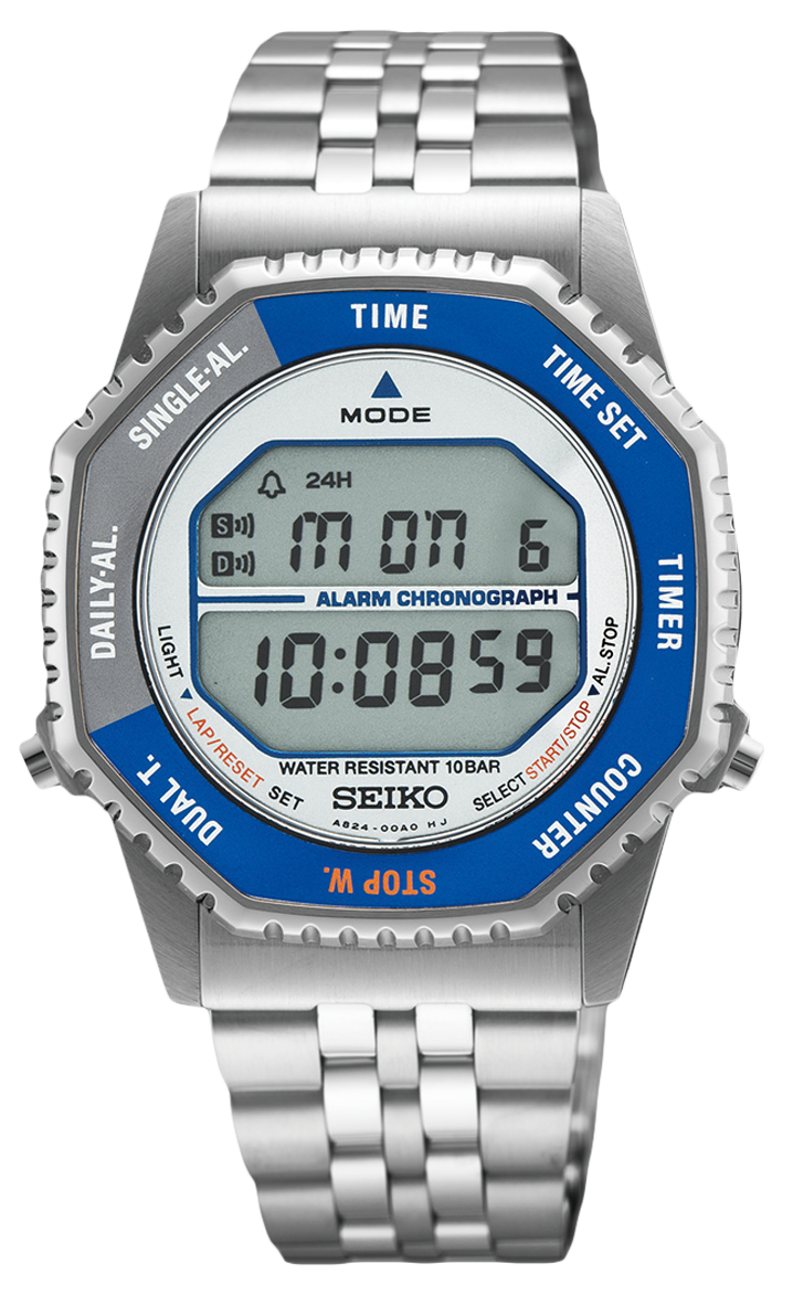 A Seiko 2025-ben újraélesztette a ’80-as évek egyik ikonikus digitális modelljét, amelyet egykor az űrhajósok is szívesen viseltek. Az új kiadás megőrizte az eredeti formajegyeket, ugyanakkor a mai technológia pontosságával és megbízhatóságával készült. A modellben az A824 kvarc szerkezet működik, amely az időmérés, a stopper, az időzítő, a visszaszámláló, a dual time és az ébresztés funkciókat kínálja, mindezt a jellegzetes forgatható lünettával vezérelve. Ez a megoldás nemcsak praktikus, hanem a dizájn egyik legkülönlegesebb eleme is, hiszen a funkciók közti váltás egyszerűen, egy mozdulattal elvégezhető. A 37 milliméteres tokméret, a 10,6 milliméteres vastagság és a 107 grammos súly kényelmes viseletet biztosít, a 10 baros vízállóság pedig tökéletesen elegendő a mindennapokhoz.
