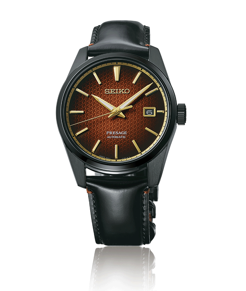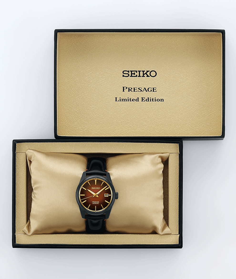 Sharp Edged Series Kabuki-inspired 2000 darabos limitált kiadás. A Presage Prestige Line sorozatába tartozó újdonság a kabuki inspirálta színeket viseli magán. A nemesacél tok fekete bevonatot kapott, amely a teljes tokot és az üvegbetétes hátlapot is fedi, és fekete a bőrszíj is, annyi kis játékossággal, hogy a hátoldala a kakiiro vörösesbarnáját kapta. Az SPB331J1 modell egy valódi klasszikus, a 6R35 kaliber három mutatós kialakítása az arannyal keretezett dátumablakkal maga “Az óra”, ahogy mindig ismertük. Az üveg hátlap alatt látható a szerkezet működés közben, és a hátlapban helyet kapott az órák egyedi sorszáma, hiszen 2000 darabos limitált modellről van szó. Az óra egyedi díszdobozban érkezik, melynek arany-fekete színvilága tökéletesen kiegészíti a Presage Sharp Edged Series sorozat újdonságait.A Seiko egy évszázadon keresztül fejlesztette és finomította a mechanikus órakészítés technológiáit. Ma mindez a tapasztalat egyesül egy új, kizárólag mechanikus modelleket felvonultató kollekcióban, melyet a Presage névre kereszteltek. A töretlen japán sikert követően a kollekció immáron a nemzetközi hírnév irányába tör, központi helyet elfoglalva a Seiko mechanikus kollekciói között.