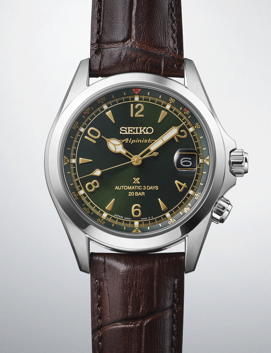 A Seiko Prospex Alpinist SPB507J1 a korábbi, zöld számlapos SPB121J1 modell modern alternatívája. Megőrzi az Alpinist sorozatra jellemző formavilágot és arányokat, miközben letisztultabb, kifinomultabb megjelenést kapott. A mély fenyőzöld számlap és a barna bőrszíj a kollekció hagyományos színvilágát idézik, a 39,5 mm-es, szuperkemény bevonattal ellátott nemesacél tok pedig a mindennapi használathoz szükséges tartósságot biztosítja.A domború zafír kristály óraüveg nagyítóval és tükröződésmentes bevonattal biztosít kiváló leolvashatóságot, míg a 200 méteres vízállóság és a menetzáras korona gondoskodik a tartósságról és a megbízhatóságról. A modell üveg hátlapja mögött a 6R55 automata szerkezet dolgozik, amely 72 órás járástartalékkal rendelkezik, így a modern Alpinist generáció meghatározó elemeként jelenik meg.Az SPB507J1 azok számára készült, akik a természet ihlette árnyalatokat és a klasszikus, időtálló stílust részesítik előnyben, miközben egy sokoldalúan viselhető, minőségi mechanikus órát keresnek.