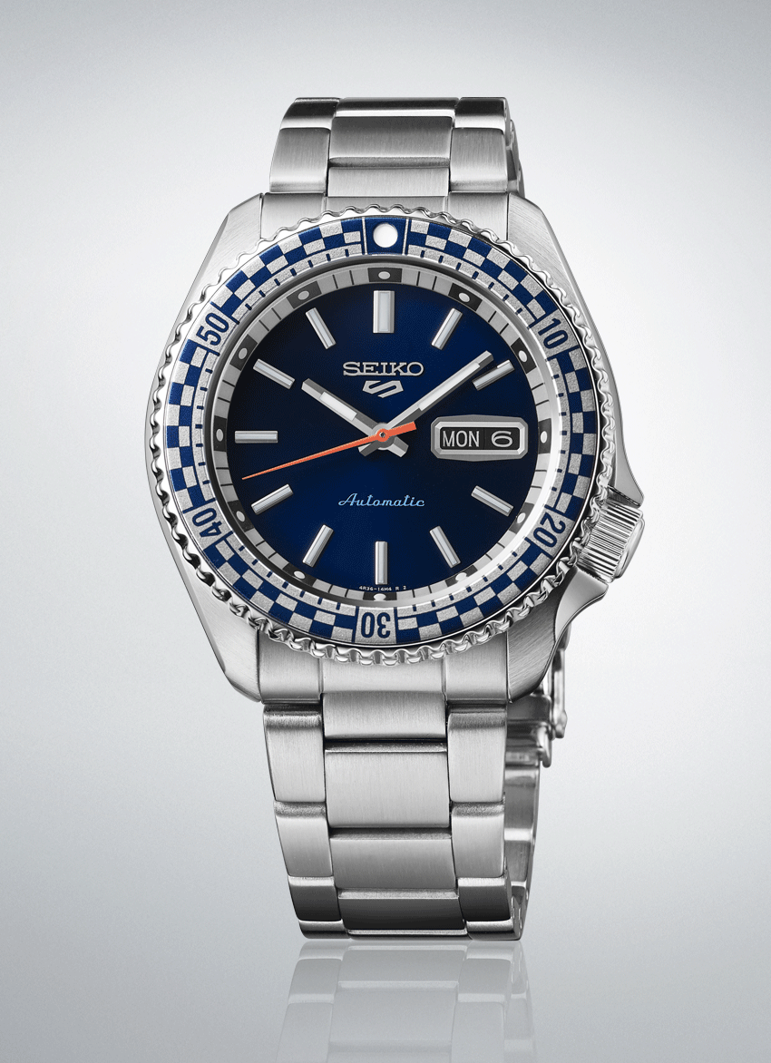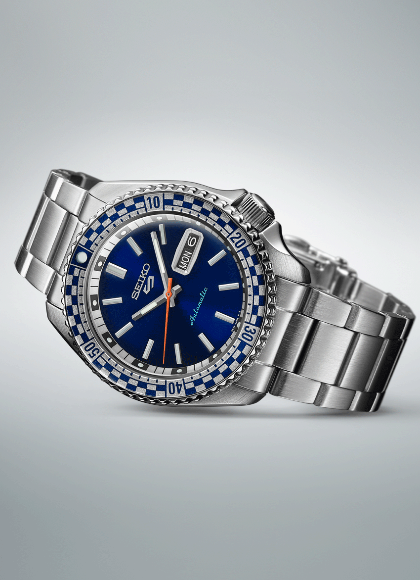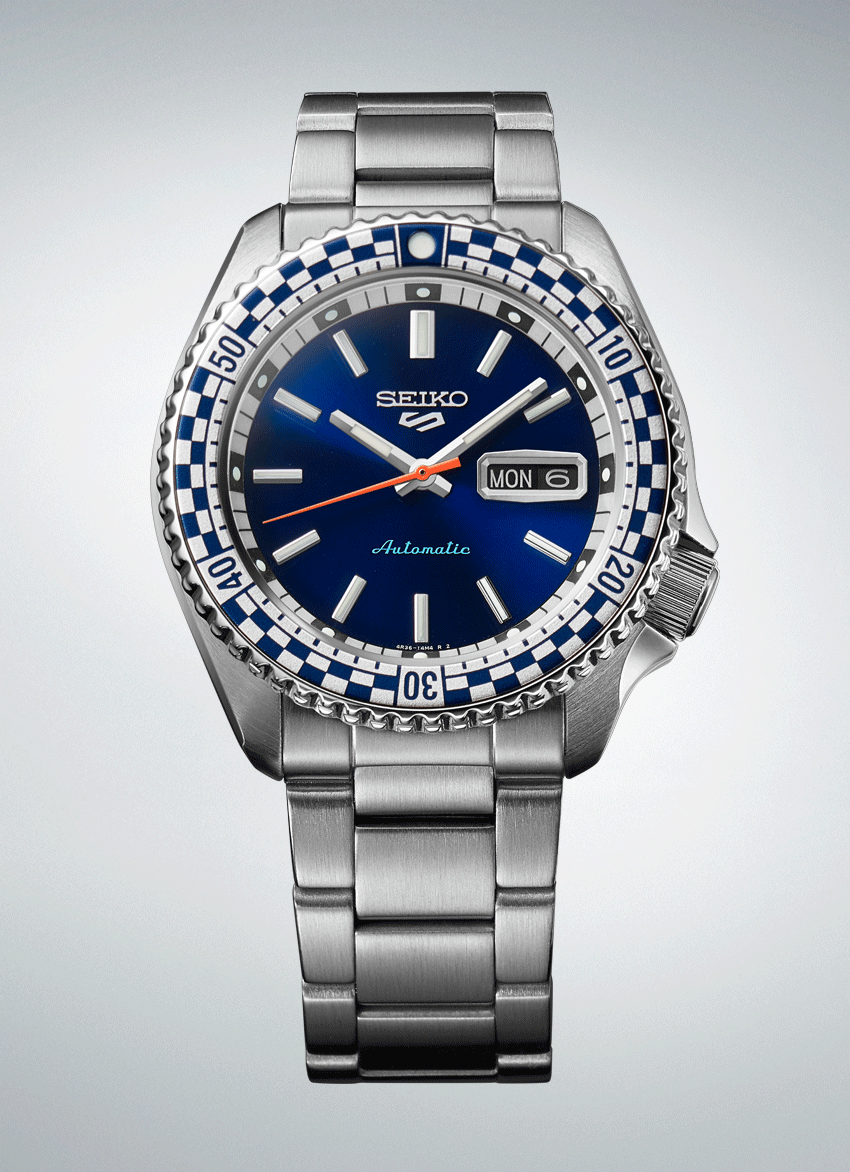 Az SRPK65K1 modell színvilága egy jellegzetes kék szín, a “Petrol blue”, amelyet jól kiegészít a narancs színű másodpercmutató. Az indexek a hatvanas-hetvenes évek jellegzetes pálcika indexei, amelyek a Seiko modellekre jellemzően kidolgozottak, és a mutatókkal együtt Lumibrite festéssel lettek ellátva, így a sötétben erősen és hosszan foszforeszkálnak majd.Az óra 10 Bar, 100 méteres vízállósággal készül, így egy valódi mindenes, egy tökéletes hétköznapi viselet. Megfordítva az órát a Seiko 5 Sports modelleknél már megszokott üveg hátlap alatt láthatjuk a 4R36 kalibert munka közben, és a hátlap Special Edition felirata figyelmeztet a modell különlegességére.