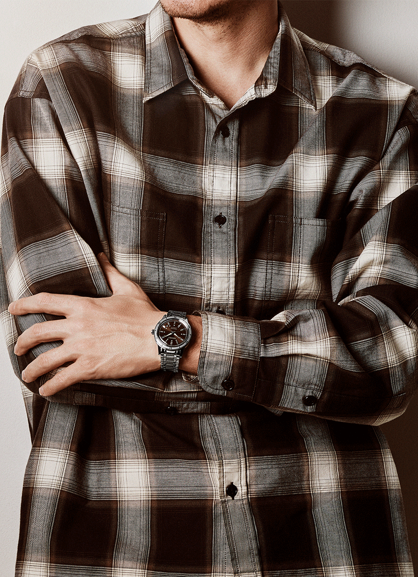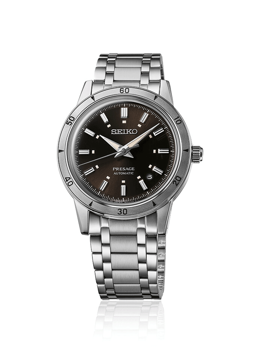 A Presage Style 60’s sorozata azokat a hatvanas éveket idézi fel, amelyekre sokan oly szívesen gondolunk, ha az óraipar és a Seiko történelméről esik szó. Az SRPL09J1 modell, mély barna számlapjával jól hozza a sorozatban megismert hangulatot. Úgy lett modernebb, hogy közben mit sem változott a megjelenése, csak a részletek finomodtak, és néhány adat változott. Kisebb lett a tok, a korábbi modellek 40.8 mm-es mérete helyett immár 39.5 mm az átmérője, ez jól illeszkedik az óraiparban évek óta látható óvatos “downsizing” sorba, a korábbi folyamatos méret növekedés helyett most újra fordult a trend, ezúttal a csökkenést látjuk. A számlapon felfedezhetünk egy érdekességet, az eddigi, 3 óránál elhelyezett és fém kerettel ellátott dátumablak helyett a komplikáció 4 és 5 óra közé költözött, a szerkezet azonban változatlanul a jól ismert 4R35 mechanikus automata kaliber.