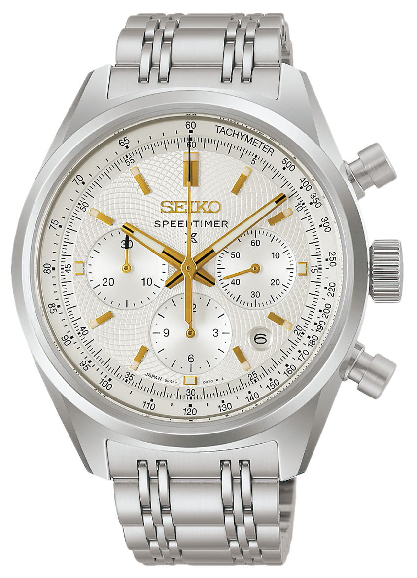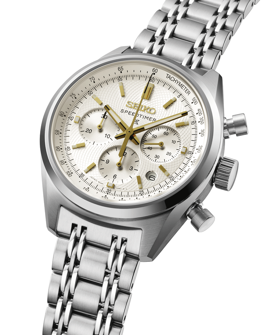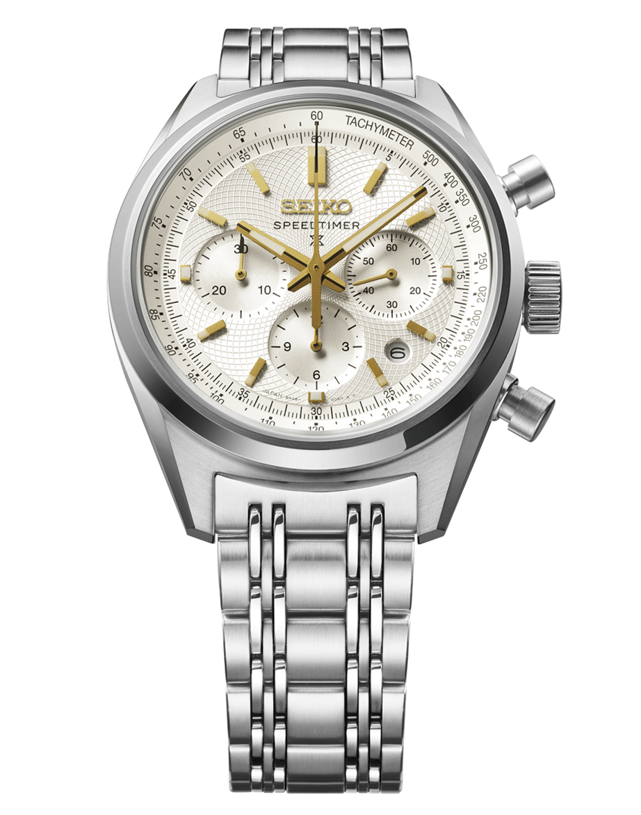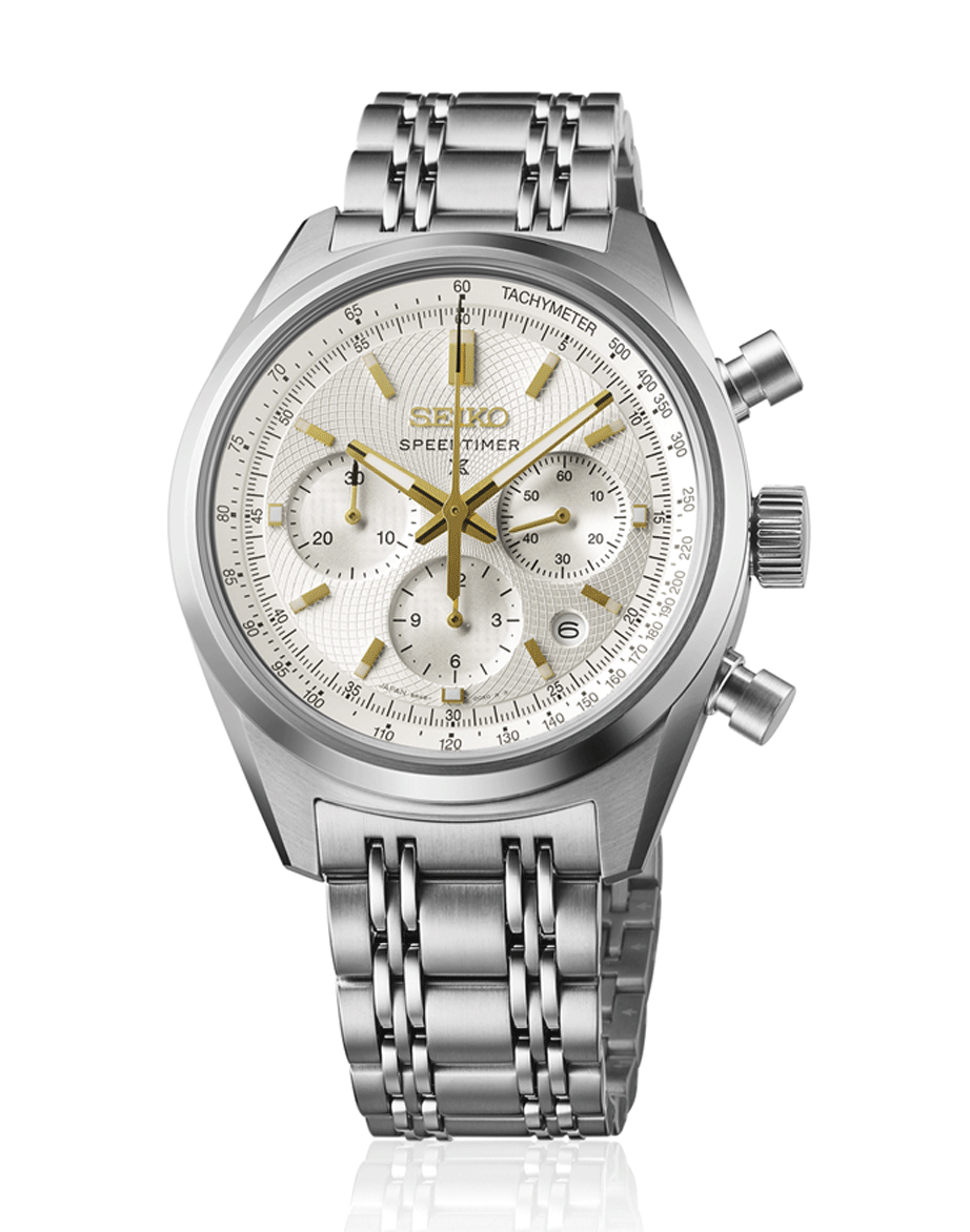 Az Seiko Prospex Speedtimer Mechanical Chronograph 145th Anniversary Limited Edition SRQ059J1 az egyik legletisztultabb példája annak, hogyan lehet a sportos karaktert és az ünnepi eleganciát valódi egyensúlyban megmutatni. Nem harsány, nem túlzó, mégis egyértelműen különleges. A selyemfényű, törtfehér számlap finom mintázata Kintaro Hattori korai óráinak világát idézi, miközben teljesen természetesen illeszkedik a Speedtimer sportos formavilágához. Az arany színű részletek, a mutatók, indexek és apró hangsúlyok pontosan annyit adnak hozzá a megjelenéshez, amennyit egy 145 éves jubileum megkíván: eleganciát, de mindenféle túlzás nélkül. A 42 mm-es tokátmérő és a 14,6 mm-es vastagság az összetett, nagy teljesítményű kronográf szerkezetből adódik, és ez adja az óra határozott, sportos kiállását. A modell a Seiko csúcskategóriás, 8R48 mechanikus automata kronográf kaliberével készül, amely konstrukciójában és működésében is a márka sportidőmérési tapasztalatainak esszenciáját hordozza. Külön említést érdemel a fémszíj, amelynek kialakítása a hatvanas–hetvenes évek klasszikus Speedtimer modelljeinek stílusát idézi. Ez a részlet nem nosztalgikus dísz, hanem tudatos visszanyúlás a Seiko sportórás múltjához. Az SRQ059J1 mindössze 700 darabos limitált kiadásban készült világszerte.