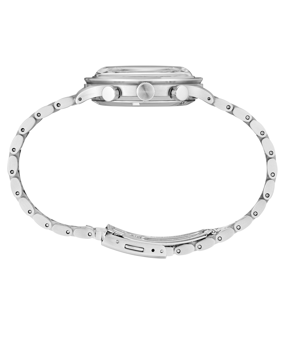 Az SSB479P1 modell egy valódi klasszikus, a fekete számlap a törtfehér segédszámlapokkal vintage hatást sugall, ami ehhez a stílushoz tökéletes. Az óra vízállósága 5 Bar, ami a mindennapokban elég biztonságot ad. A 8T63 kaliber egy úgynevezett meca-kvarc (hívják mecha-quartz-nak is), amely egy kvarc szerkezet mechanikus stopper vezérléssel, hogy a kronográf funkció használata közben megmaradjon az érzés, ahogy a stopper gombjait lenyomva kis kattanással, valódi időmérőként indítja és állítja le a mérést. A megoldás a Seiko mechanikus kronográfjaitól származik, és a megbízható működése mellett a mutatók nullázását egyszerre és egyetlen mozdulattal végzi, míg a hagyományos kvarc kronográfok jellemzően a motorral hajtva valamely irányba nulláznak le.